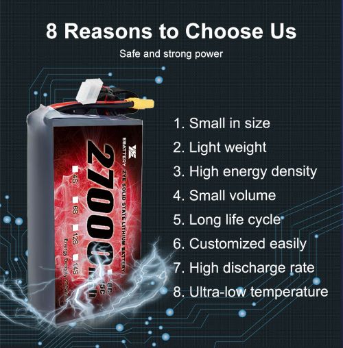 Amaiera handiko zinemaren dronek askotan botere handia behar dute kameraren karga astunak eta egonkortzeko sistemak funtzionatzeko. 28000mAM 12s bateriek ematen dituzten hegaldiaren denbora luzatuak zinemagileek denbora luzeak harrapatu eta aireko plano konplexuak harrapatu dituzte bateriaren aldaketarik gabe.