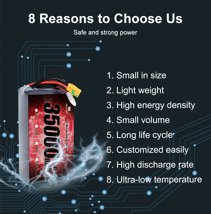Informazio gehiago lortzekoEnergiaren dentsitate handiko estatu solidoaren bateriaeta errendimendu handiko energia biltegiratzeko irtenbide sorta, mesedez, ez izan zalantzarik gurekin harremanetancoco@zypewower.com. Gure aditu taldea prest dago zure beharretarako bateriaren konponbide perfektua aurkitzen laguntzeko.