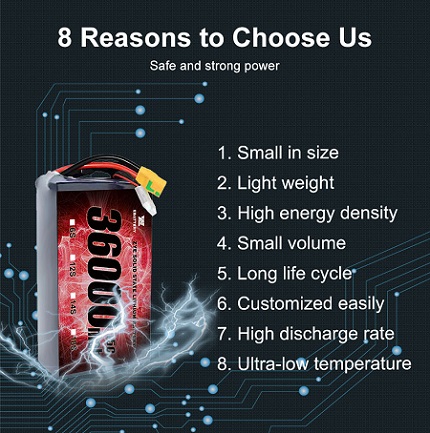 Aditua: Litioaren bateriaren ekoizpenean 10 urte baino gehiagoko esperientzia, errendimendu handiko soluzioak barneBidalketa azkarra 22000mAh 44000mAh 1190190 1174170 6S22.2V 22.8V 12S44.4V 25C Lipo Bateria Pack, aplikazio zorrotzak egiteko diseinatua.